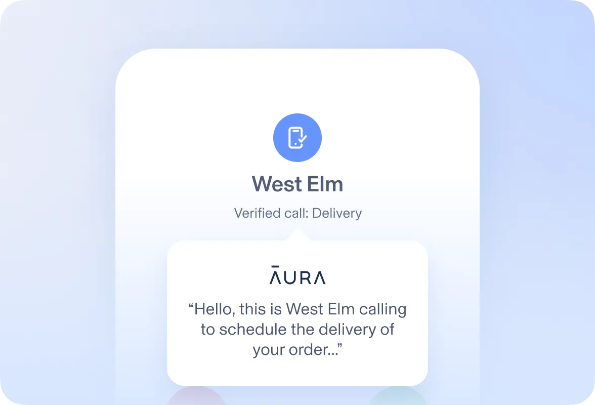 Aura’s Call Assistant will pick up unknown calls on your behalf to screen them for spam or scams. The AI will only forward legitimate calls to you, so you won't miss appointments, deliveries, and emergencies while you enjoy living spam-free.