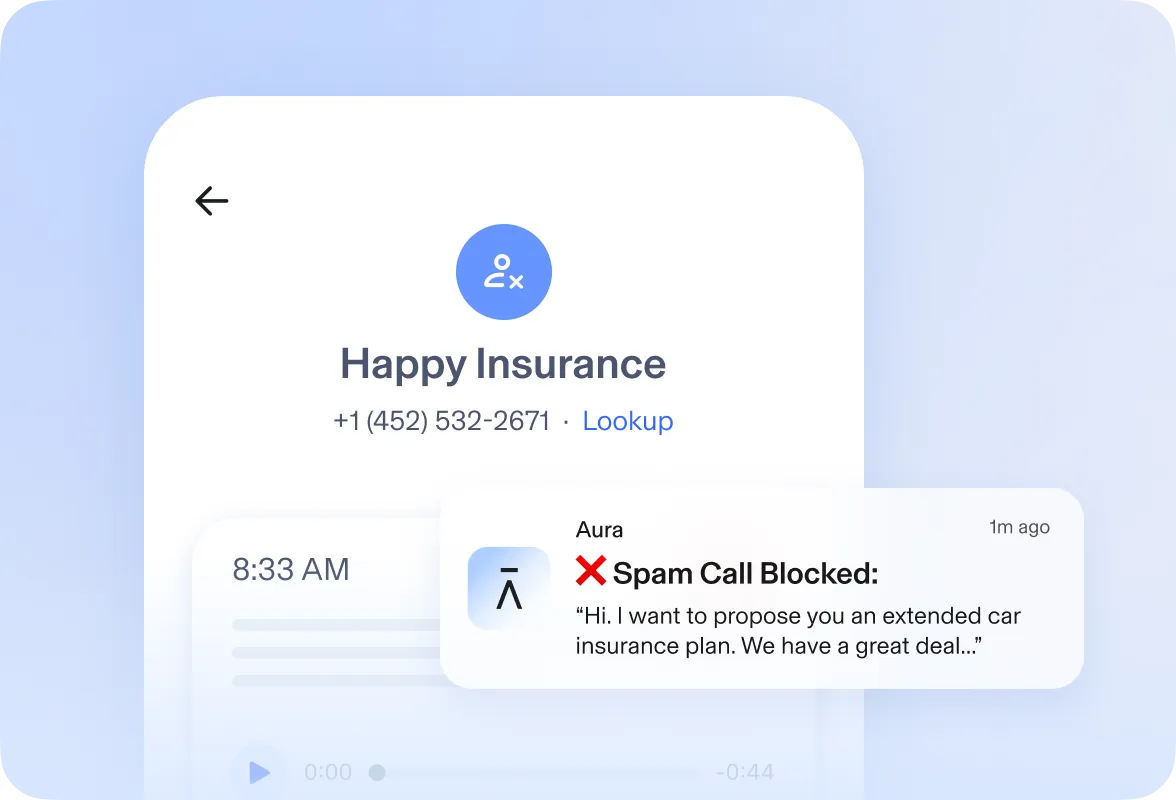 Phone scammers use phishing schemes to steal your money or personal info. Aura keeps your calls and messages safe with smart spam blocking and call screening with our AI-powered Call Assistant.